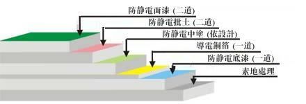 ③防靜電底漆:采用滲透性及附著力特強防靜電環氧底漆滾涂一道,增強表面附著力;